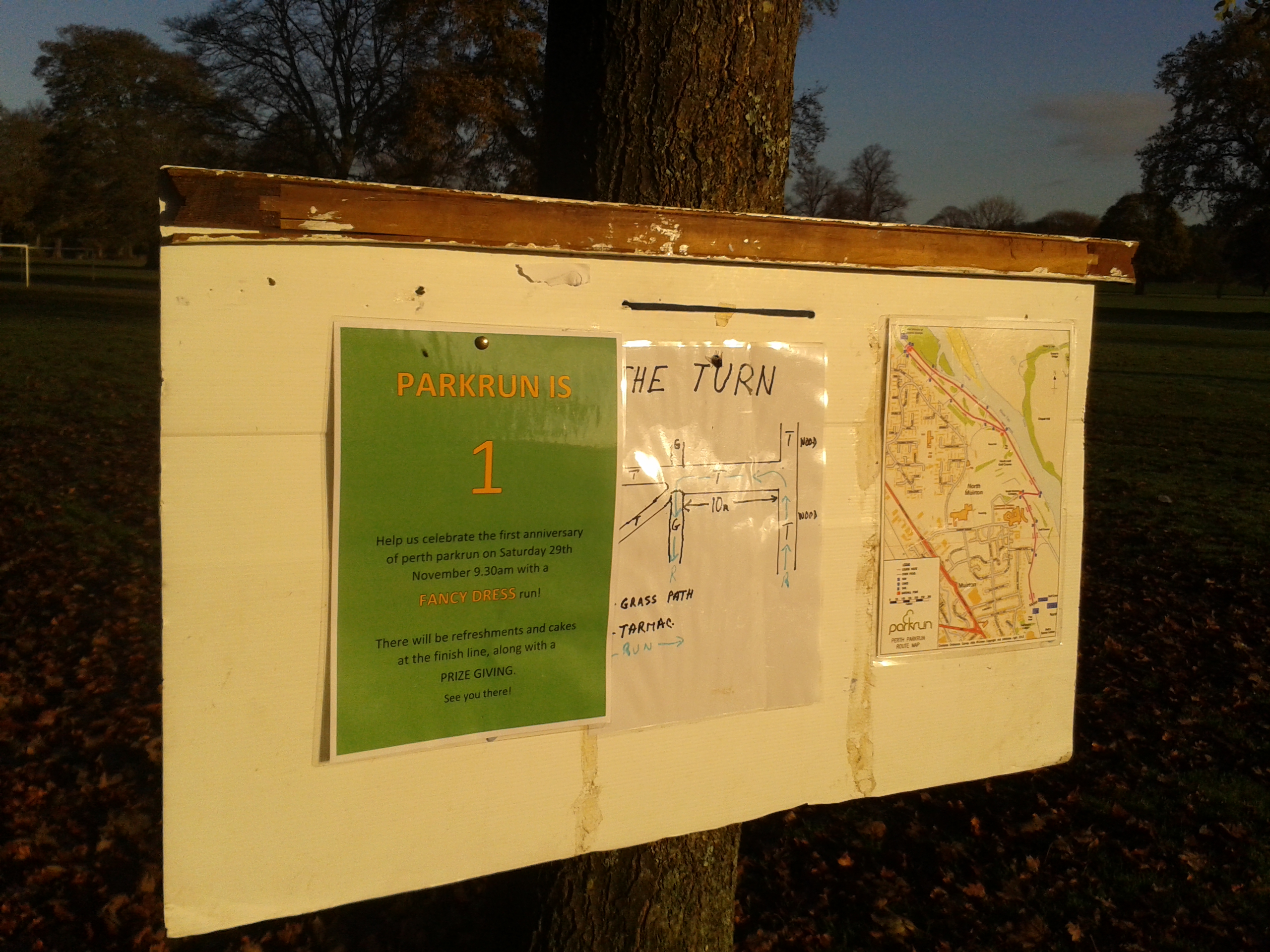 I was in town for a Scottish Dancing do. I was here last year, too, but the Perth parkrun hadn’t yet started – in fact at my visit they were full of enthusiasm for their upcoming first birthday.