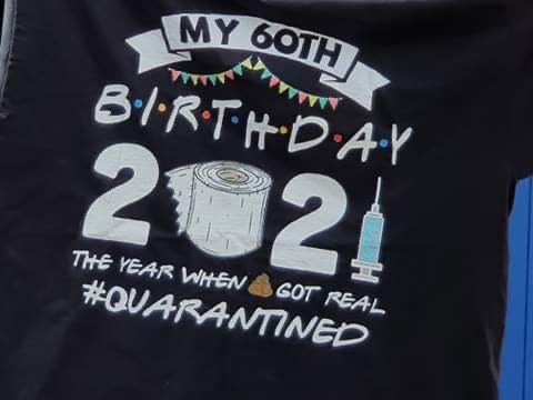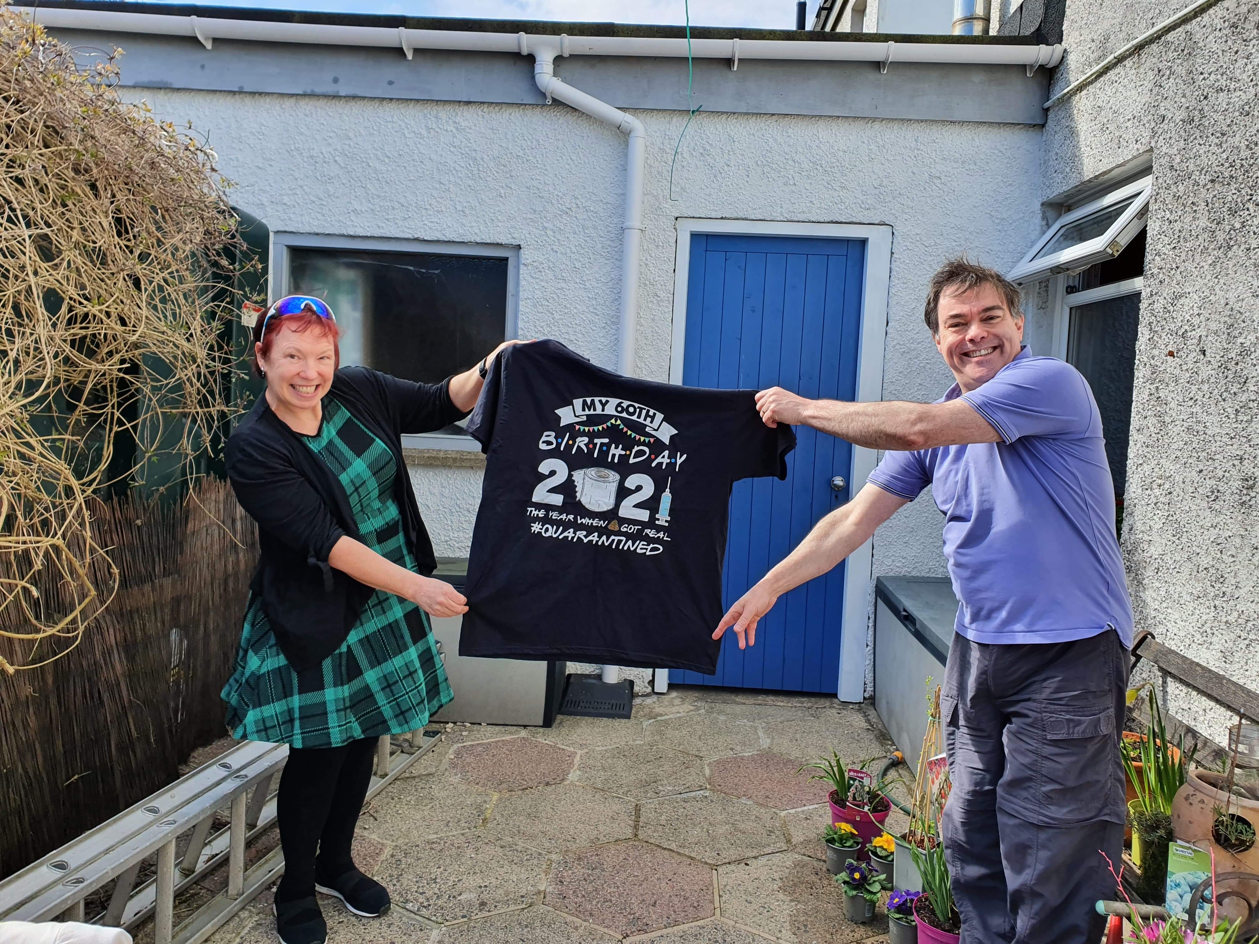 Well, this started with my cousin’s 60th birthday. Which happened to be in March 2021. The UK was still in the throes of Coronavirus restrictions, so his party was held over Zoom. I thought it would be amusing to get him a special T shirt to wear, and I duly found and ordered one off t’internet.