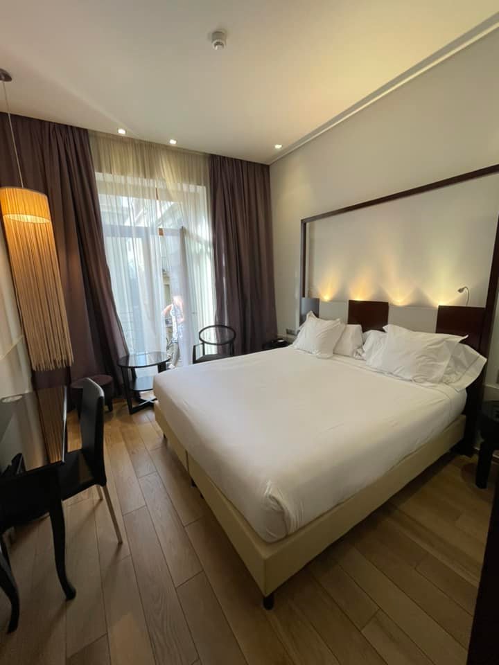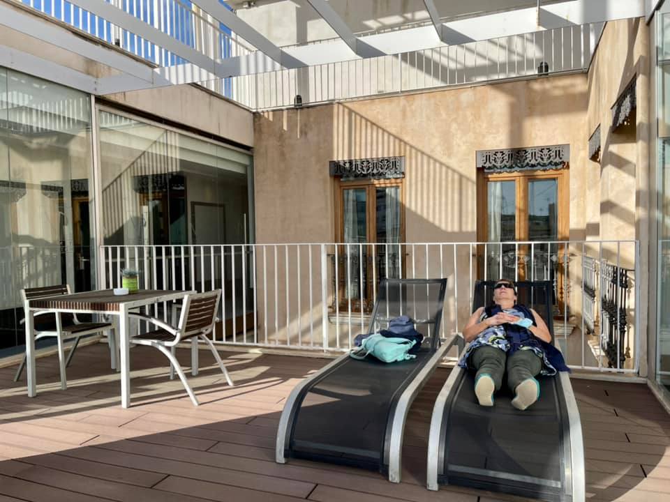 The satnav took us to the Vincci Palace Hotel on Carrer La Pau without too much swearing, followed by several trips round the block while we tried to locate the side street where the entrance to the car park was located. Via an elevator. A member of staff patiently guided me while I line up the car at exactly the right angle before squeezing it in to the small space. The hotel is very conveniently located, and even has a sun terrace!