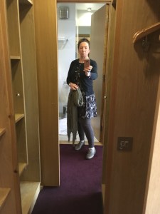 One of the most valuable pieces that a traveller can carry is a versatile wrap, pashmina, shawl. It serves as a blanket when trying to get some sleep, is a stylish cover up for evening strolls, and can be folded into a cushion. I love this Ichi reversible wrap in dove grey and mustard, which I found on sale for £10 in a little boutique in Carrickfergus called Lisa’s Attic. It looks good, though the mustard side is a bit fluffy and sheds hairs over the clothes beneath.