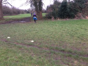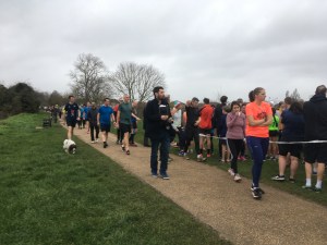 The course is a sort of lollipop shape. The start is around 200m further towards Kingston, runs on a tarmac path alongside the river, onto the towpath under the footbridge, along to Ham field. This can get a bit mucky!