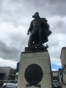 In Wexford I found the statue of John Barry at the Crescent. He became known as “The father of the American Navy”, and every year a wreath is laid at this statue. I was impressed at a photo of JFK taking part in this ceremony. History has its eyes on you! There was a teeny alleyway leading up to the main shopping street. The train crawls through here at a very slow speed.